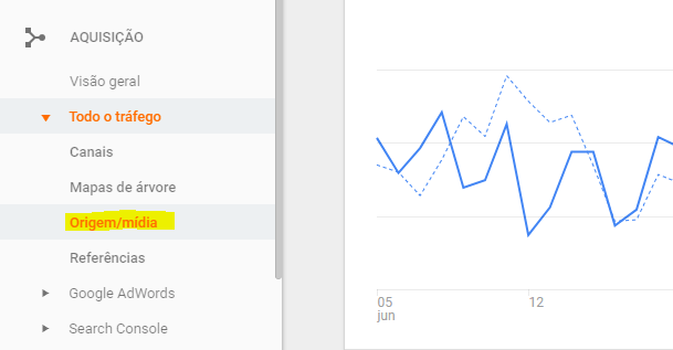 Nesse caso, adicionamos um parâmetro chamado “utm_source” identificado como “marketing”. Parâmetros servem para muitas coisas em uma URL, mas esse em específico informa ao Google Analytics que a origem do link (source) é “marketing”. A pessoa entra no site e absolutamente nada muda para ela, mas para você será possível rastrear todo o acesso, quanto tempo ela ficou online, quantas e quais páginas visitou e até se efetuou a compra ou não. Se você acessar o Analytics em Aquisição > Todo o Tráfego > Origem/Mídia, você poderá visualizar todos os acessos vindos da origem “marketing”.