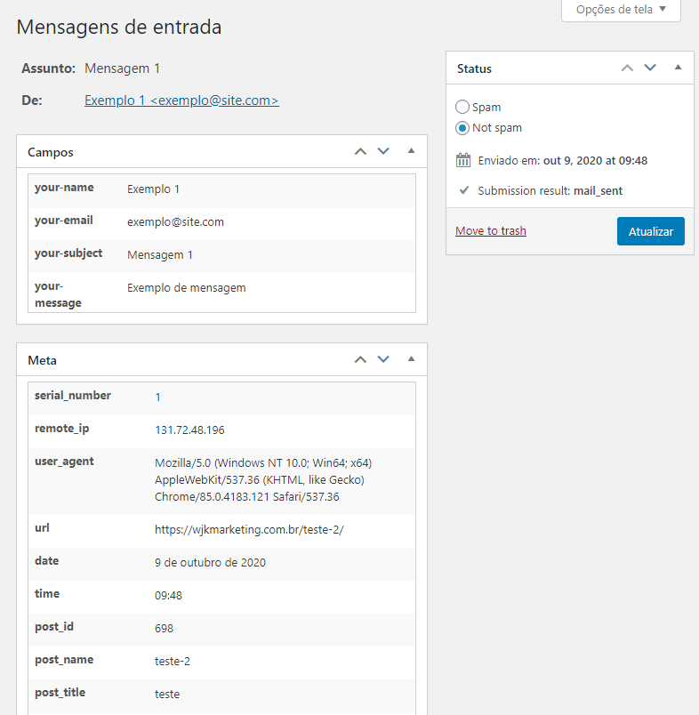 META: aqui temos dados técnicos que ajudam a identificar quem preencheu o formulário, como endereço de IP, dados do navegador, data, URL em que o formulário estava, etc.