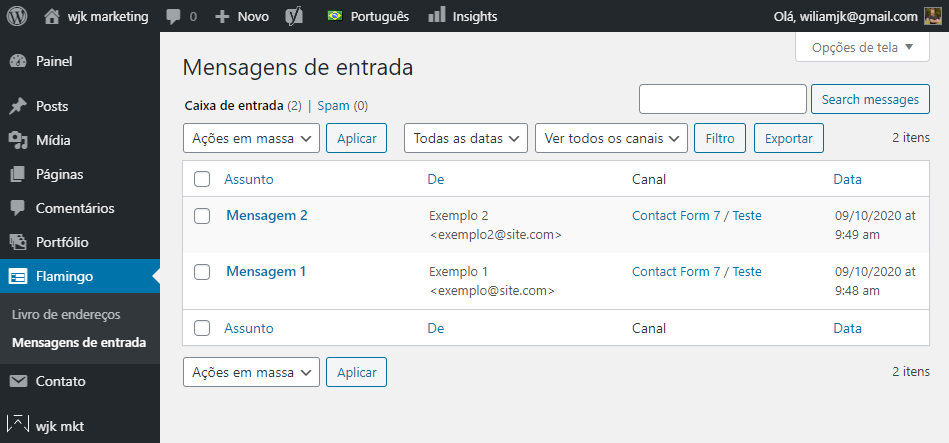 Sempre que alguém preenche algum formulário em seu site (como o formulário da página de contato), os dados registrados são enviados para algum e-mail que foi previamente configurado. Mas caso esse e-mail se perca de alguma forma, você ainda pode acessar os dados registrados pelo painel do WordPress usando um plugin chamado Flamingo.