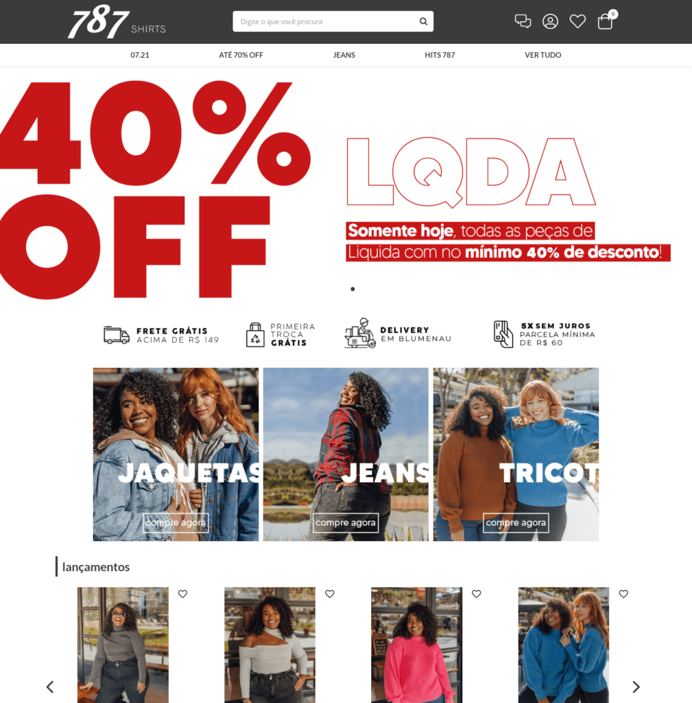 A 787 Shirts fez uma liquidação de estoque com descontos agressivos e o banner foi um dos meios de divulgar a promoção.