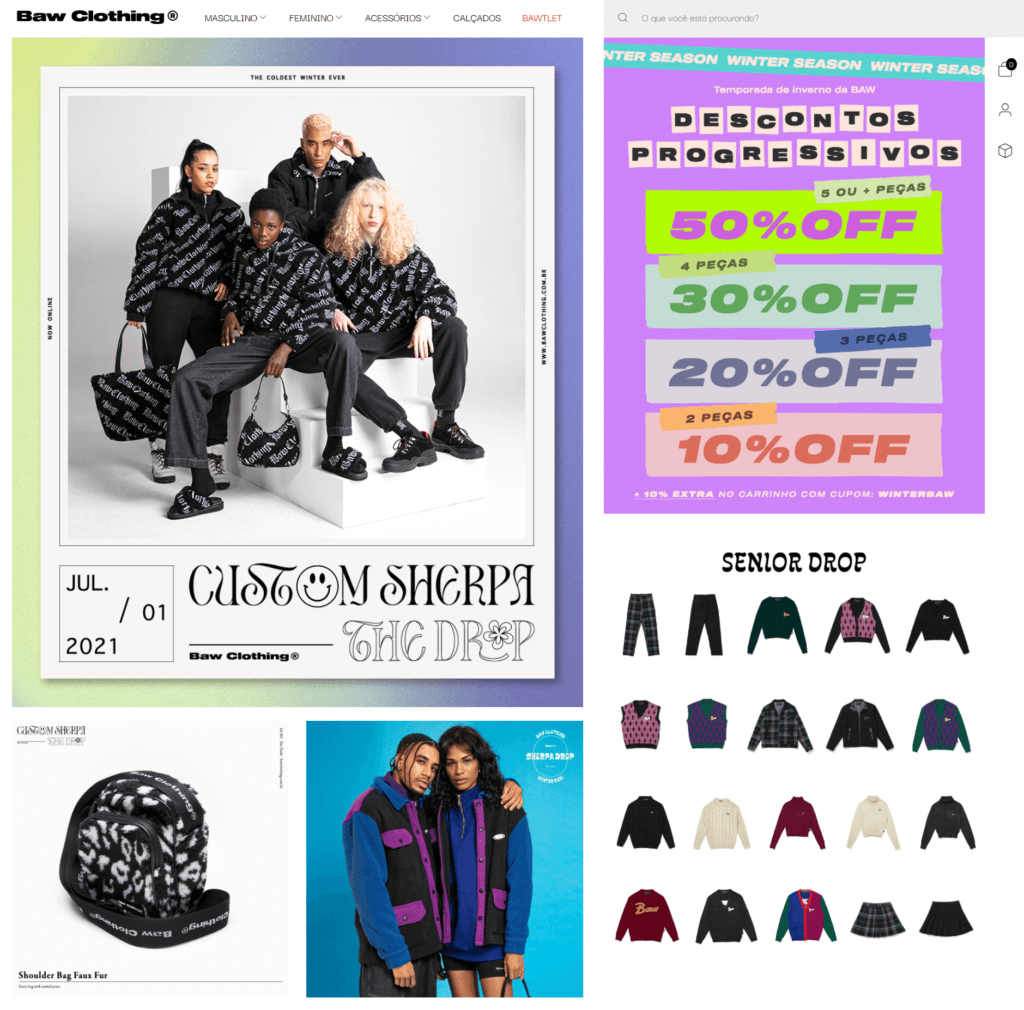 A Baw é uma marca conhecida pela subversão, explorando o caos e a abstração. Esses valores ficam evidentes nos banners da marca.