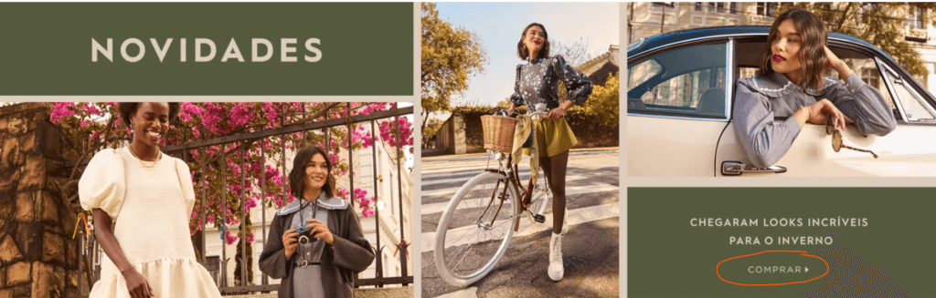 Essa mensagem comercial deve ser compatível com toda a comunicação da marca, no formato de campanhas. Então se você vai promover uma nova coleção, você pode fazer isso nos banners do site, no e-mail marketing, nas mídias sociais, na vitrine da loja física, etc. Quanto mais oportunidades de ver uma mensagem, mais chances o cliente vai ter de reagir a ela comprando.
