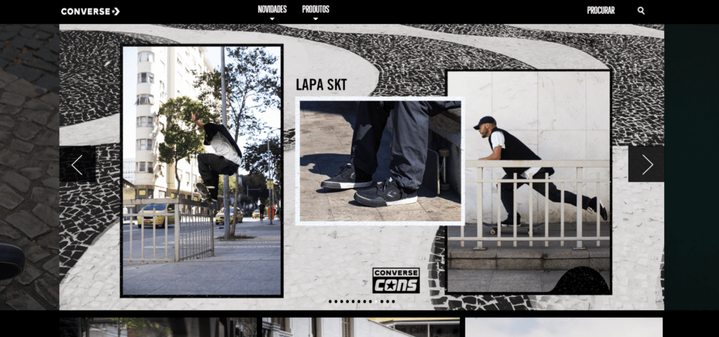 O banner da Converse quase não mostra o produto porque dá bastante ênfase a situações de uso.