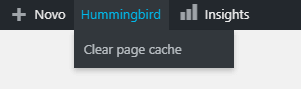 - Na barra superior, identifique o menu do Hummingbird e clique em “Clear Page Cache”