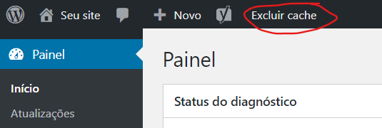- Clique em Excluir cache na barra administrativa no topo do site.