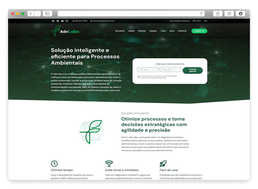 Para a AdvLabs, criamos um site institucional capaz de apresentar os serviços e vantagens oferecidos pelo software jurídico.