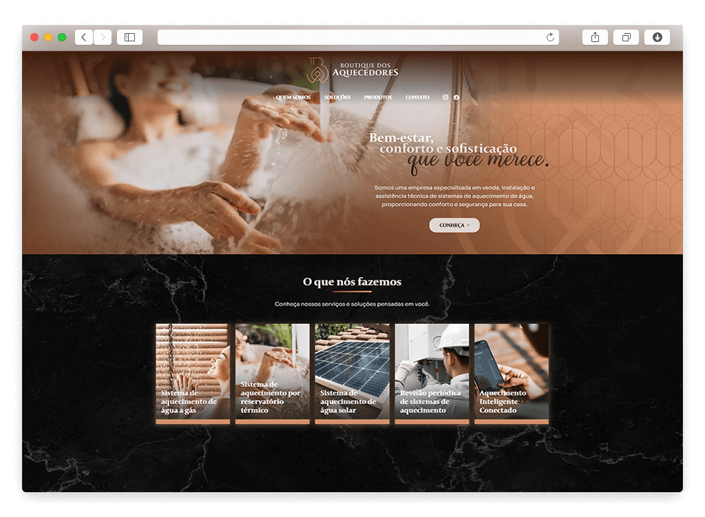 Criamos um site institucional com catálogo dos produtos e serviços oferecidos pela a empresa Boutique dos Aquecedores.