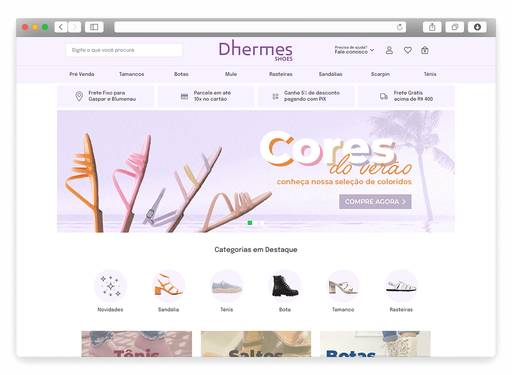 Ajudamos a Dhermes Shoes a estruturar sua loja online usando a plataforma da Loja Integrada.