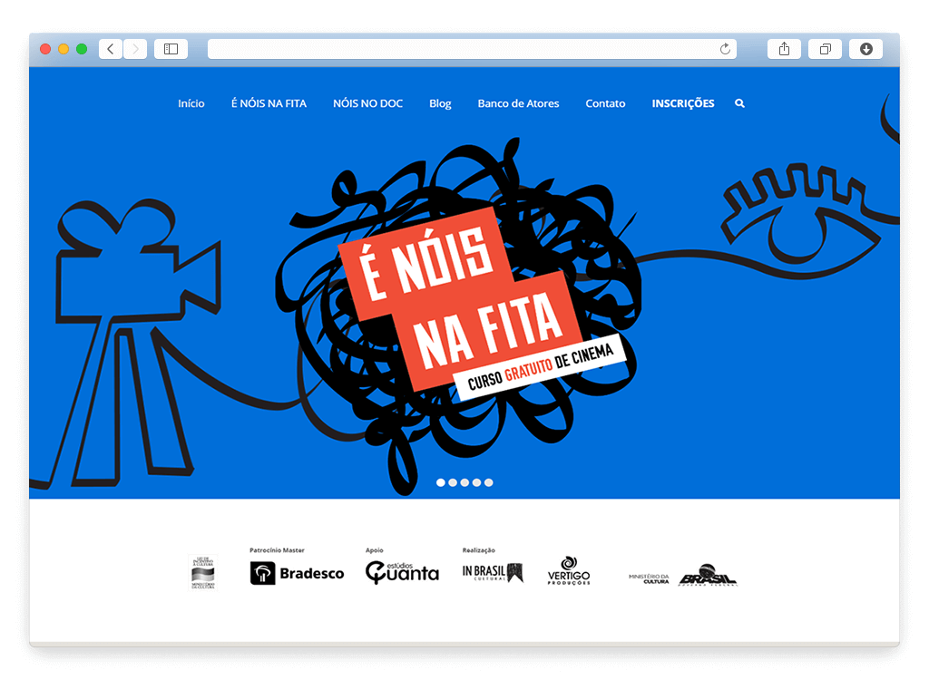 O primeiro site do É Nóis na Fita não fazia justiça ao projeto que é: cursos gratuitos de cinema para jovens que, além de ter aulas com grandes nomes do mercado, também têm a oportunidade de fazer um curta metragem do início ao fim. O novo site dá destaque às inscrições, deixa as informações muito mais claras e também dá espaço para os curtas dos alunos.