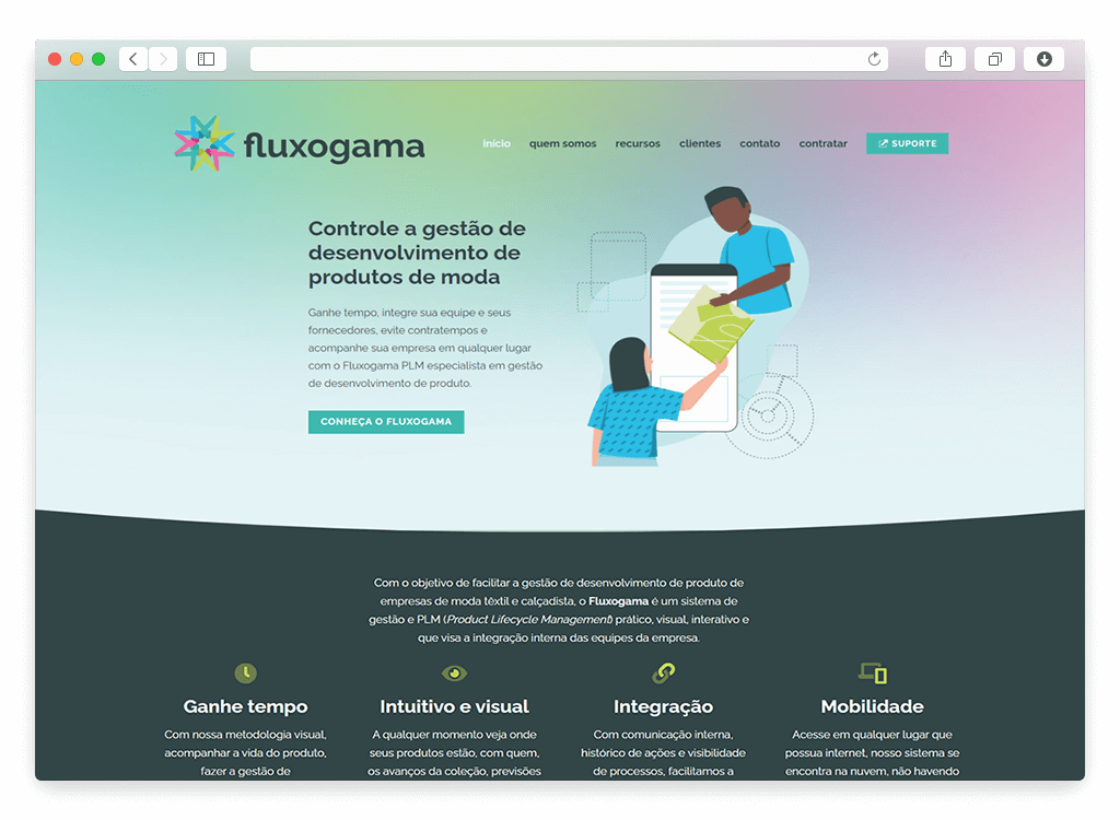 O sistema Fluxogama precisava de um site que apresentasse suas funcionalidades para possíveis novos clientes, além de servir como um canal de captação de leads. O site ficou moderno e combinou com a nova identidade visual.