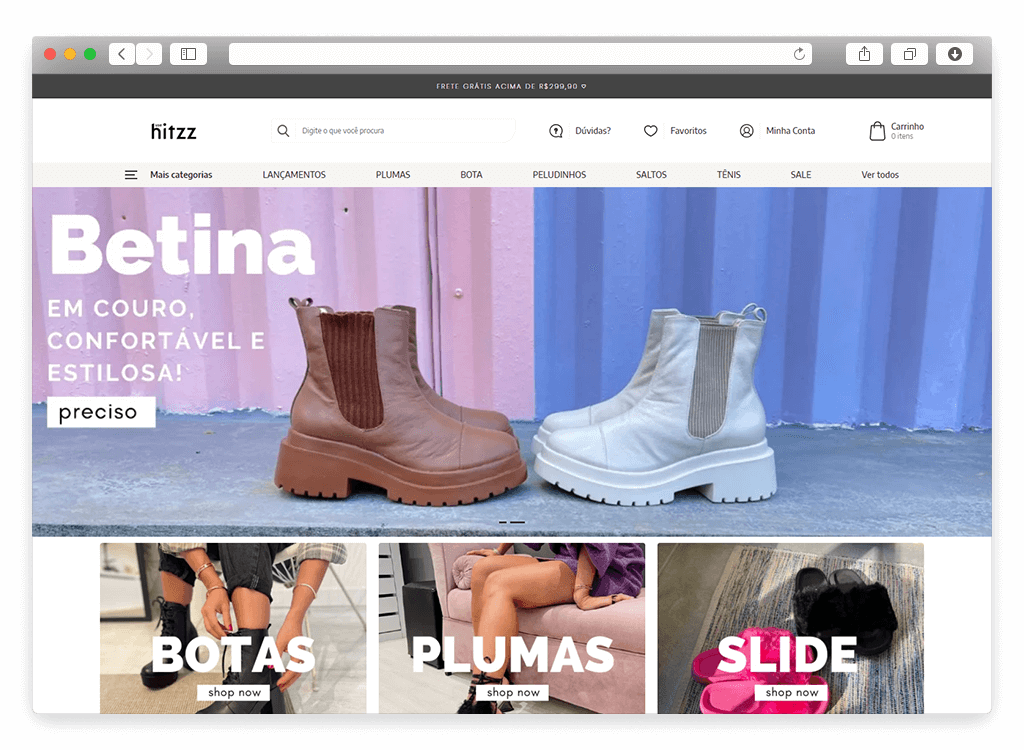 A Hitzz escolheu a gente para reestruturar sua loja online com Loja Integrada. Configuramos um novo tema e revisamos tudo para melhorar o desempenho da loja.