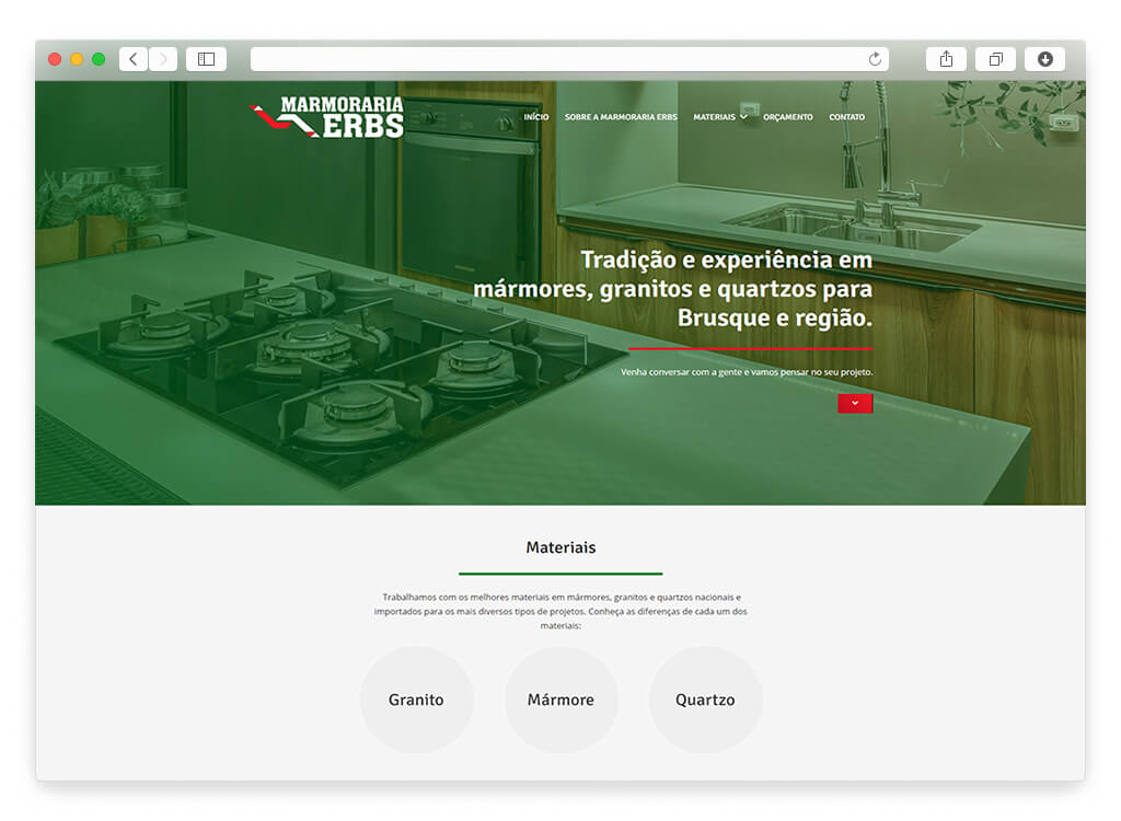Desenvolvemos o primeiro site da empresa, optamos por um layout simples, rápido, destacando os produtos e com formulário de solicitação de orçamento.