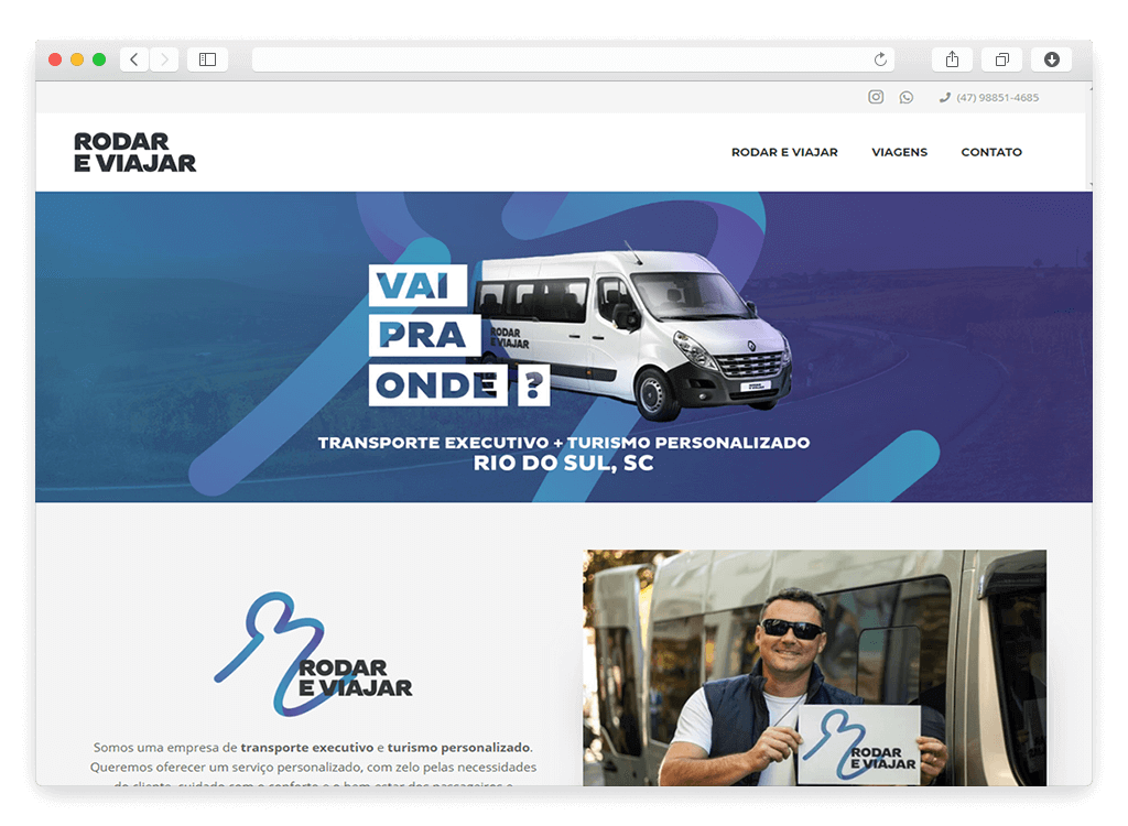 A fim de ser encontrado e apresentar seus serviços, criamos o site da Rodar e Viajar focado em desempenho e enfatizando sua bela identidade visual.