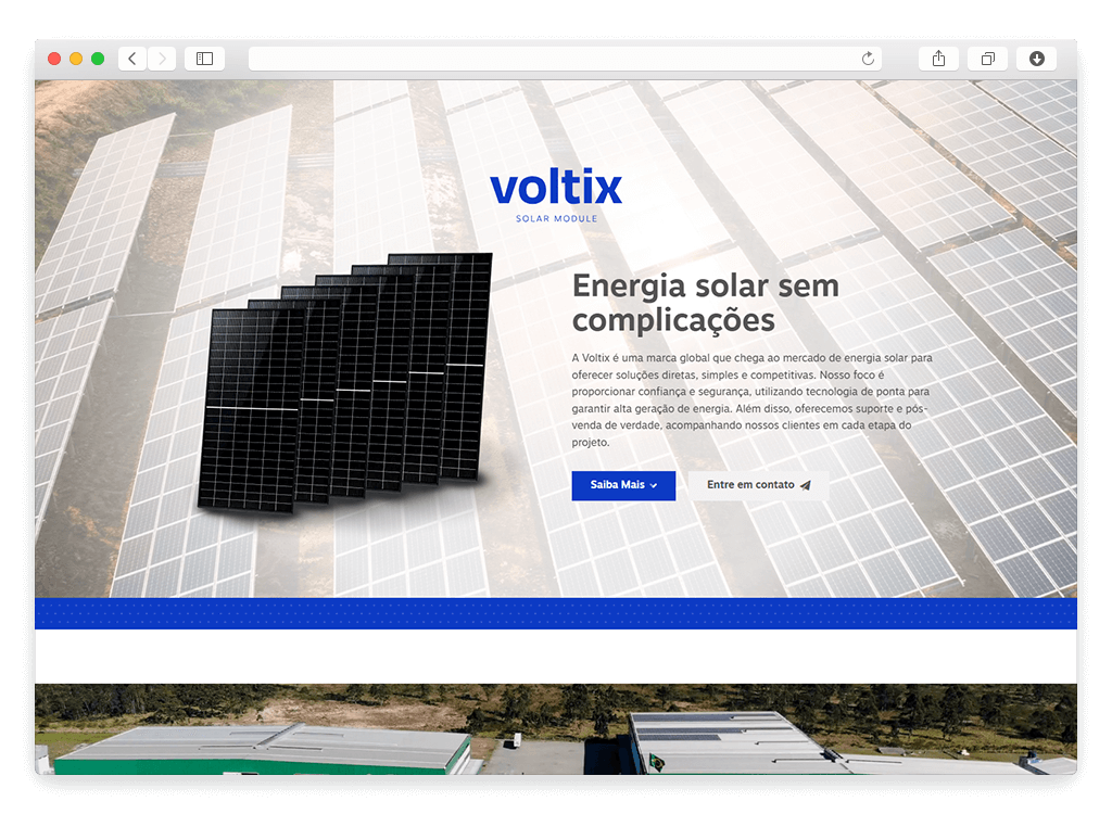 Para a empresa Voltix nós criamos um site institucional que apresenta seus produtos e benefícios.
